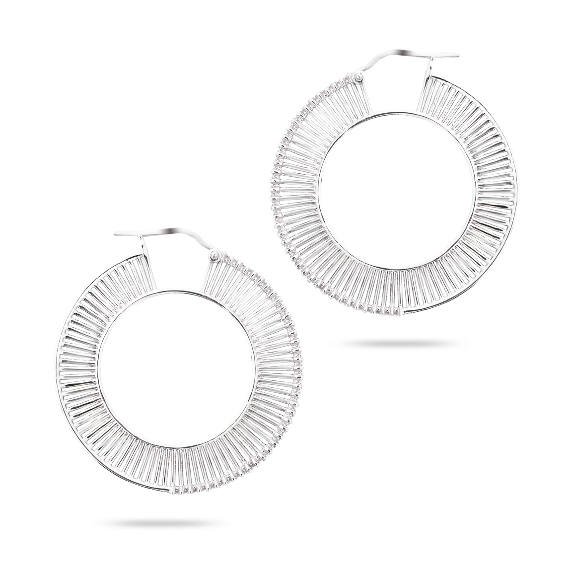 Luxurious diamond pendant from Benyan Jewelry’s Unique Pieces collection: a stunning piece of art crafted from 18-karat white gold. The circular geometric design features two interlocking frames with attractive scattered lines, adding a touch of elegance and beauty. The front is set with luxurious round diamonds in Brilliant Cut, reflecting luxury and sophistication. This unique design is suitable for happy special occasions, making this piece an ideal choice for those seeking distinction and beauty